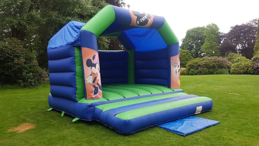 Mickey & Minnie adult bouncy castle is 15ft x 15ft and is suitable for adults and children.