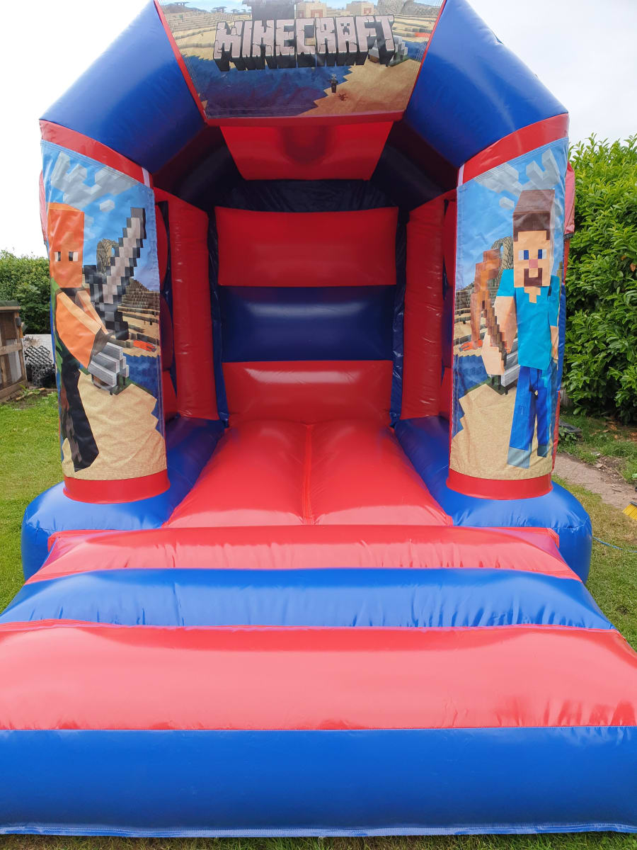 Our Minecraft bouncy castle is 8ft x 11ft and is suitable for children up to 9yrs.