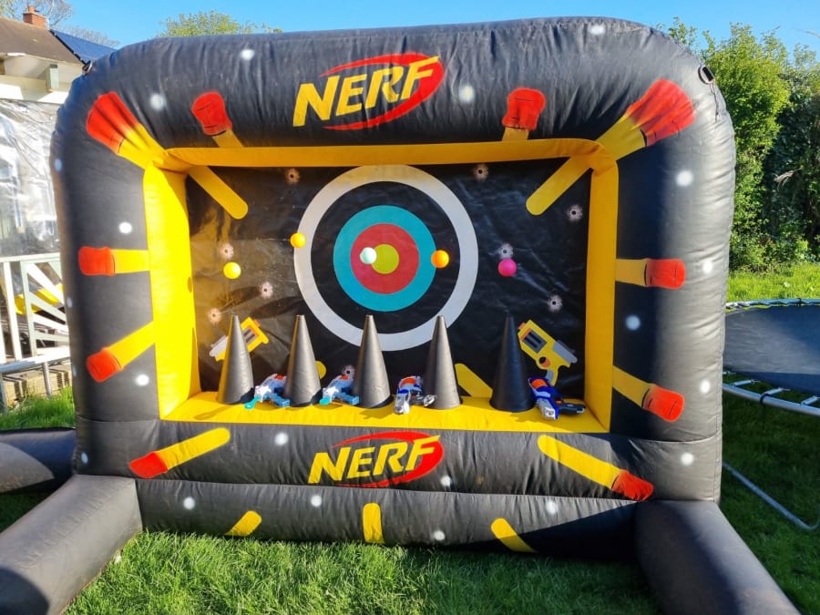 Check out this amazing inflatable Nerf target shootout this game is great for adult and children, this will bring hours of fun and excitement to your event.The aim of the game is to shoot the balls that are levitating, with the powerful foam bullets and guns provided. You can challenge someone and see who can do the best time.