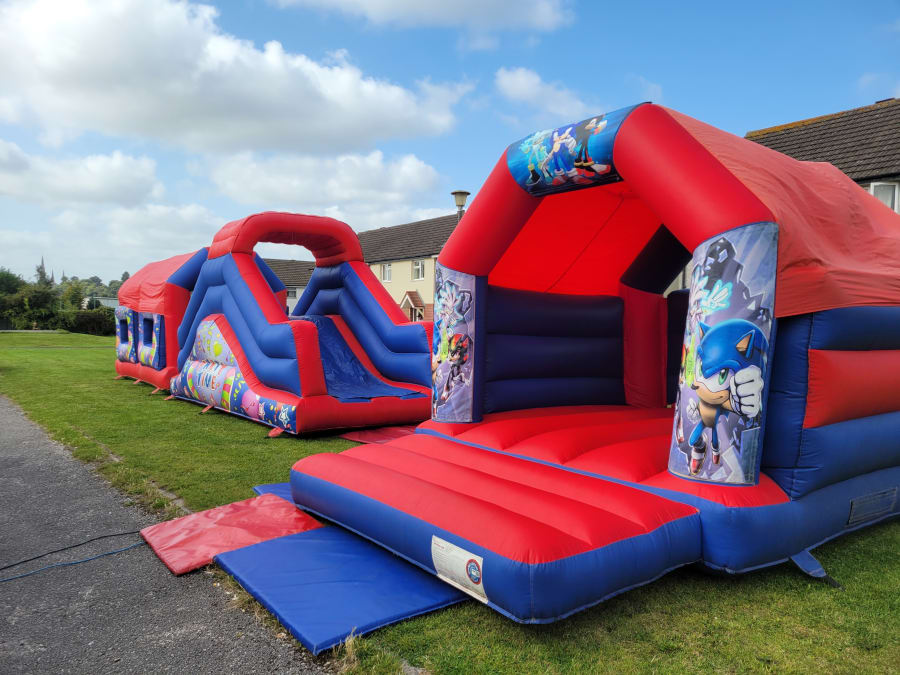 Our Sonic themed bouncy castle is 11ft x 15ft and is suitable for children up to 13yrs.