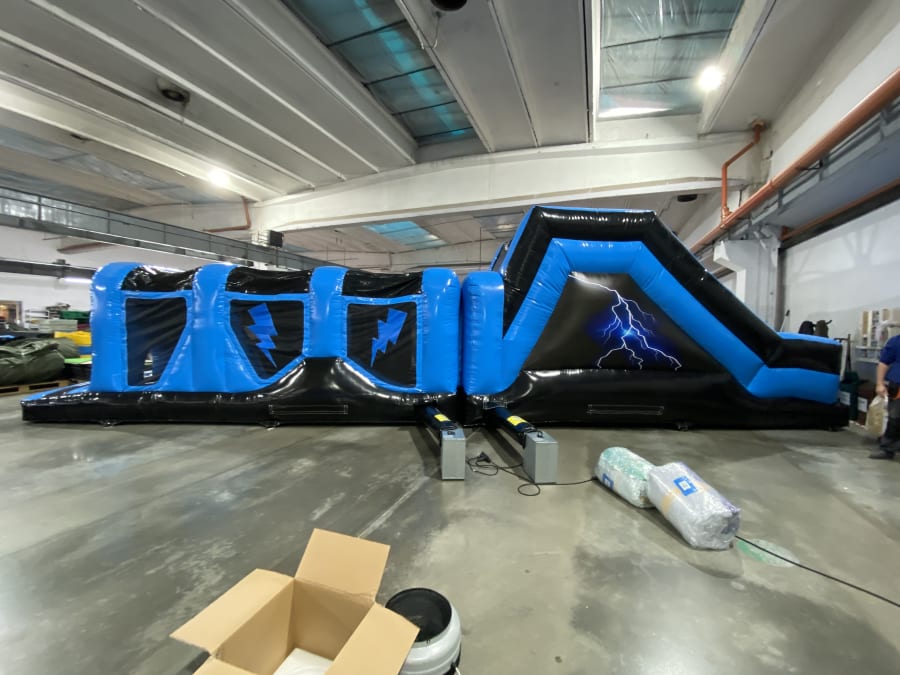 Step into a realm of high-energy adventure with the Lightning Energy Assault Course! Perfect for thrill-seekers, this inflatable obstacle course captures the awe-inspiring nature of lightning strikes while delivering heart-pounding fun. Featuring a twin-lane setup, this course offers the ideal platform for head-to-head races or engaging obstacle challenges that will ignite your competitive spirit.