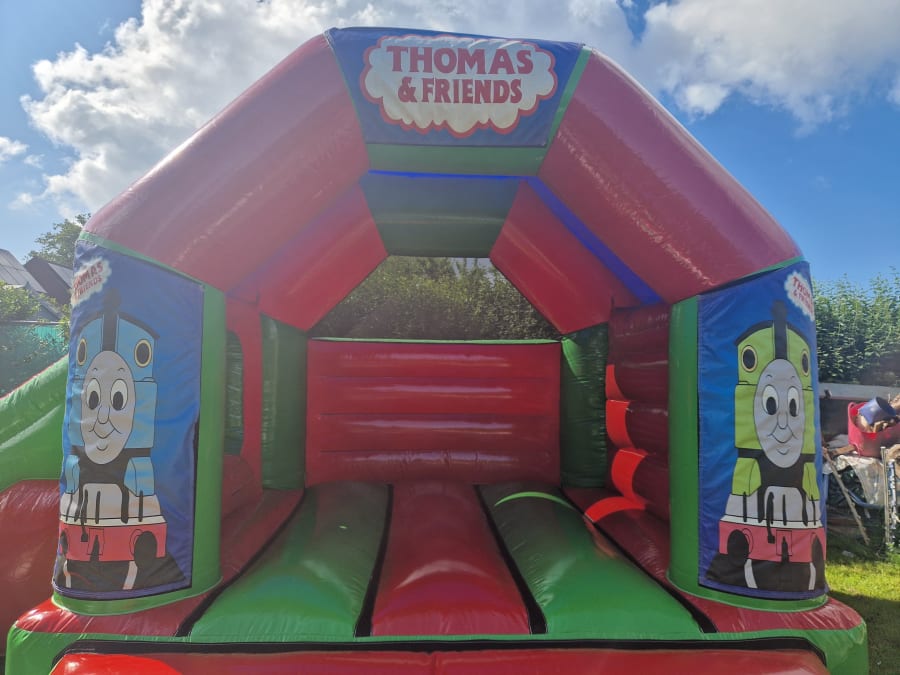 Introducing the 17x15 Thomas Bouncy Castle Combi 🎈 Are you looking for the perfect entertainment for your little one's special day? Look no further than our Bouncy Castle Combi, measuring 17ft x 15ft! 🎉 This bouncy castle is designed for children up to 12 years old, making it a fantastic choice for birthday parties and celebrations. Indoor and Outdoor Fun for Kids in Lichfield, Fradley, Abbots Bromley, and Beyond! 🏰 Our Bouncy Castle Combi is perfect for both indoor and outdoor use, providing endless entertainment for children in Lichfield, Fradley, Abbots Bromley, Kings Bromley, and many more areas! 🌈 Whether you're hosting a party at home or in a local venue, this bouncy castle is sure to be a hit with the little ones. Just give us a call to book your rental today! Keep the Adults at Bay - This One's Just for the Kids! 👧👦 While the kids bounce and play to their heart's content, you can relax knowing that our Bouncy Castle Combi is designed specifically for children and is not suitable for adults. Let the little ones have their fun in a safe and secure environment while you enjoy the event stress-free! 🎈 Delivery to Your Doorstep - From Lichfield, Tamworth to Sutton Coldfield and Everywhere In Between! 🚚 At DC Bouncy Castles we offer delivery of our Bouncy Castles to a wide range of areas, including Tamworth, Burton on Trent, Stafford, Brownhills, and more! Wherever you are located, we'll make sure your entertainment arrives on time so that the party can begin! 🎁 Don't miss out on the fun - book our 17x15 Thomas Bouncy Castle Combi for your next event and create unforgettable memories for your little ones! Contact us today to reserve your date!