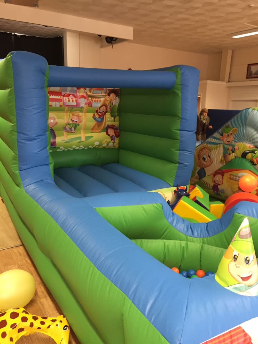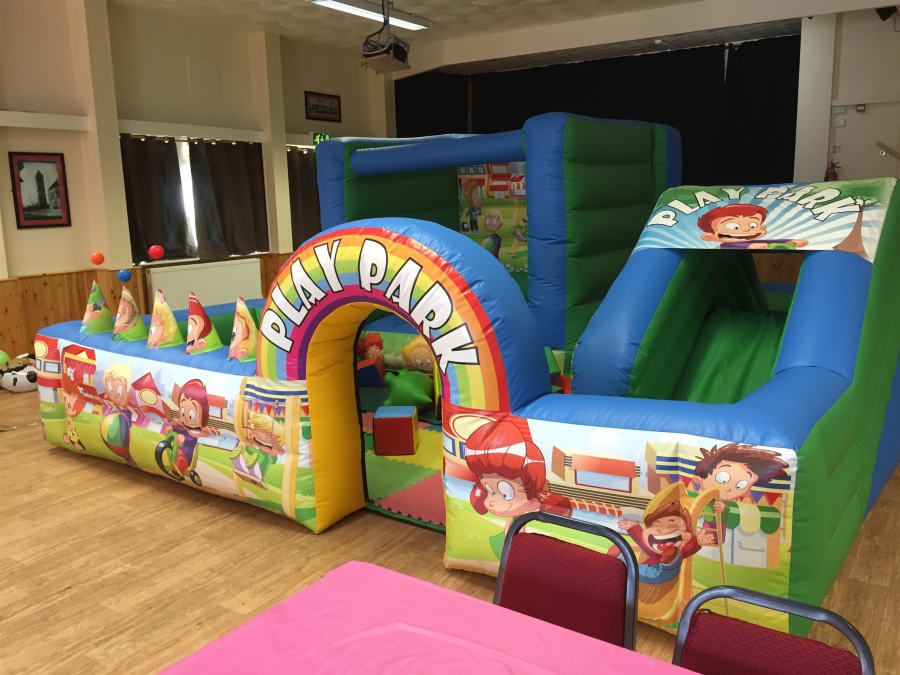 The park comes complete with full size bouncy castle, ball pool, slide, Archway, Air Juggler Cones, Safety Mats, Fitted Ground sheet, steps and padded slip sheet for extra safety.