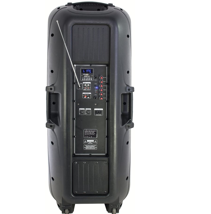 The Bluetooth party Speaker sound system with wireless mic and is an instant speaker system, comes with fully integrated amplifier, you can stream audio directly from a mobile device (such as iPhone mp3 smart phone), or benefit from the USB and SD card slots to operate the large LCD display and on-board MP3 player. Or just use RCA line inputs to connect other external audio devices such as CD players, wireless microphone can be added if needed.
