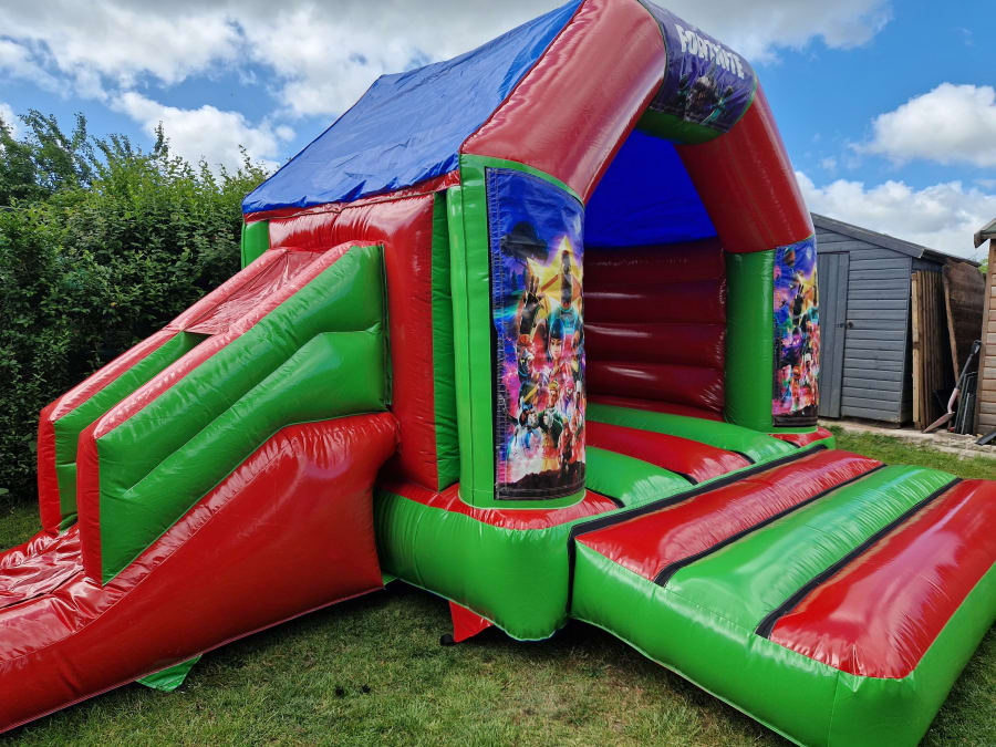 Introducing the 17x15 Fortnite Bouncy Castle Combi 🎈 Are you looking for the perfect entertainment for your little one's special day? Look no further than our Bouncy Castle Combi, measuring 17ft x 15ft! 🎉 This bouncy castle is designed for children up to 12 years old, making it a fantastic choice for birthday parties and celebrations. Indoor and Outdoor Fun for Kids in Lichfield, Fradley, Abbots Bromley, and Beyond! 🏰 Our Bouncy Castle Combi is perfect for both indoor and outdoor use, providing endless entertainment for children in Lichfield, Fradley, Abbots Bromley, Kings Bromley, and many more areas! 🌈 Whether you're hosting a party at home or in a local venue, this bouncy castle is sure to be a hit with the little ones. Just give us a call to book your rental today! Keep the Adults at Bay - This One's Just for the Kids! 👧👦 While the kids bounce and play to their heart's content, you can relax knowing that our Bouncy Castle Combi is designed specifically for children and is not suitable for adults. Let the little ones have their fun in a safe and secure environment while you enjoy the event stress-free! 🎈 Delivery to Your Doorstep - From Lichfield, Tamworth to Sutton Coldfield and Everywhere In Between! 🚚 At DC Bouncy Castles we offer delivery of our Bouncy Castles to a wide range of areas, including Tamworth, Burton on Trent, Stafford, Brownhills, and more! Wherever you are located, we'll make sure your entertainment arrives on time so that the party can begin! 🎁 Don't miss out on the fun - book our 17x15 Fortnite Bouncy Castle Combi for your next event and create unforgettable memories for your little ones! Contact us today to reserve your date!