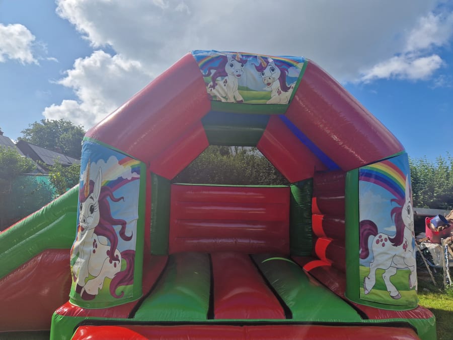 Introducing the 17x15 Unicorn Bouncy Castle Combi 🎈 Are you looking for the perfect entertainment for your little one's special day? Look no further than our Bouncy Castle Combi, measuring 17ft x 15ft! 🎉 This bouncy castle is designed for children up to 12 years old, making it a fantastic choice for birthday parties and celebrations. Indoor and Outdoor Fun for Kids in Lichfield, Fradley, Abbots Bromley, and Beyond! 🏰 Our Bouncy Castle Combi is perfect for both indoor and outdoor use, providing endless entertainment for children in Lichfield, Fradley, Abbots Bromley, Kings Bromley, and many more areas! 🌈 Whether you're hosting a party at home or in a local venue, this bouncy castle is sure to be a hit with the little ones. Just give us a call to book your rental today! Keep the Adults at Bay - This One's Just for the Kids! 👧👦 While the kids bounce and play to their heart's content, you can relax knowing that our Bouncy Castle Combi is designed specifically for children and is not suitable for adults. Let the little ones have their fun in a safe and secure environment while you enjoy the event stress-free! 🎈 Delivery to Your Doorstep - From Lichfield, Tamworth to Sutton Coldfield and Everywhere In Between! 🚚 At DC Bouncy Castles we offer delivery of our Bouncy Castles to a wide range of areas, including Tamworth, Burton on Trent, Stafford, Brownhills, and more! Wherever you are located, we'll make sure your entertainment arrives on time so that the party can begin! 🎁 Don't miss out on the fun - book our 17x15 Unicorn Bouncy Castle Combi for your next event and create unforgettable memories for your little ones! Contact us today to reserve your date!