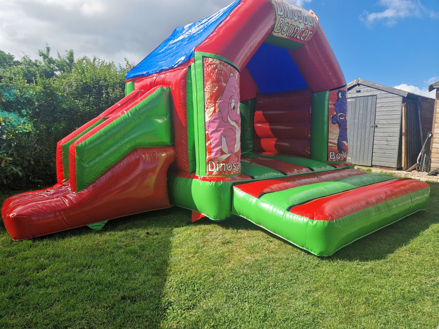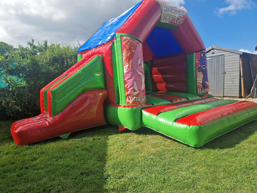 Introducing the 17x15 Dinosaur Bouncy Castle Combi 🎈 Are you looking for the perfect entertainment for your little one's special day? Look no further than our Bouncy Castle Combi, measuring 17ft x 15ft! 🎉 This bouncy castle is designed for children up to 12 years old, making it a fantastic choice for birthday parties and celebrations. Indoor and Outdoor Fun for Kids in Lichfield, Fradley, Abbots Bromley, and Beyond! 🏰 Our Bouncy Castle Combi is perfect for both indoor and outdoor use, providing endless entertainment for children in Lichfield, Fradley, Abbots Bromley, Kings Bromley, and many more areas! 🌈 Whether you're hosting a party at home or in a local venue, this bouncy castle is sure to be a hit with the little ones. Just give us a call to book your rental today! Keep the Adults at Bay - This One's Just for the Kids! 👧👦 While the kids bounce and play to their heart's content, you can relax knowing that our Bouncy Castle Combi is designed specifically for children and is not suitable for adults. Let the little ones have their fun in a safe and secure environment while you enjoy the event stress-free! 🎈 Delivery to Your Doorstep - From Lichfield, Tamworth to Sutton Coldfield and Everywhere In Between! 🚚 At DC Bouncy Castles we offer delivery of our Bouncy Castles to a wide range of areas, including Tamworth, Burton on Trent, Stafford, Brownhills, and more! Wherever you are located, we'll make sure your entertainment arrives on time so that the party can begin! 🎁 Don't miss out on the fun - book our 17x15 Dinosaur Bouncy Castle Combi for your next event and create unforgettable memories for your little ones! Contact us today to reserve your date!