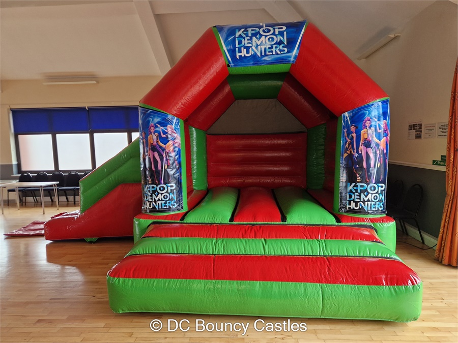 Introducing the 17x15 KPop Demon Hunter Bouncy Castle Combi 🎈 Are you looking for the perfect entertainment for your little one's special day? Look no further than our Bouncy Castle Combi, measuring 17ft x 15ft! 🎉 This bouncy castle is designed for children up to 12 years old, making it a fantastic choice for birthday parties and celebrations. Indoor and Outdoor Fun for Kids in Lichfield, Fradley, Abbots Bromley, and Beyond! 🏰 Our Bouncy Castle Combi is perfect for both indoor and outdoor use, providing endless entertainment for children in Lichfield, Fradley, Abbots Bromley, Kings Bromley, and many more areas! 🌈 Whether you're hosting a party at home or in a local venue, this bouncy castle is sure to be a hit with the little ones. Just give us a call to book your rental today! Keep the Adults at Bay - This One's Just for the Kids! 👧👦 While the kids bounce and play to their heart's content, you can relax knowing that our Bouncy Castle Combi is designed specifically for children and is not suitable for adults. Let the little ones have their fun in a safe and secure environment while you enjoy the event stress-free! 🎈 Delivery to Your Doorstep - From Lichfield, Tamworth to Sutton Coldfield and Everywhere In Between! 🚚 At DC Bouncy Castles we offer delivery of our Bouncy Castles to a wide range of areas, including Tamworth, Burton on Trent, Stafford, Brownhills, and more! Wherever you are located, we'll make sure your entertainment arrives on time so that the party can begin! 🎁 Don't miss out on the fun - book our 17x15 PK Pop Bouncy Castle Combi for your next event and create unforgettable memories for your little ones! Contact us today to reserve your date!