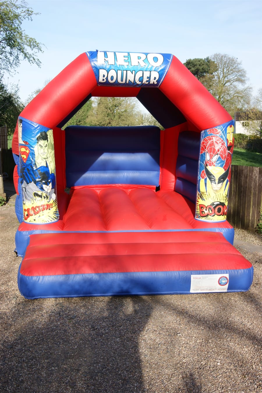 Our Super Hero bouncy castle is 11ft x 15ft and is suitable for children up to 13yrs.