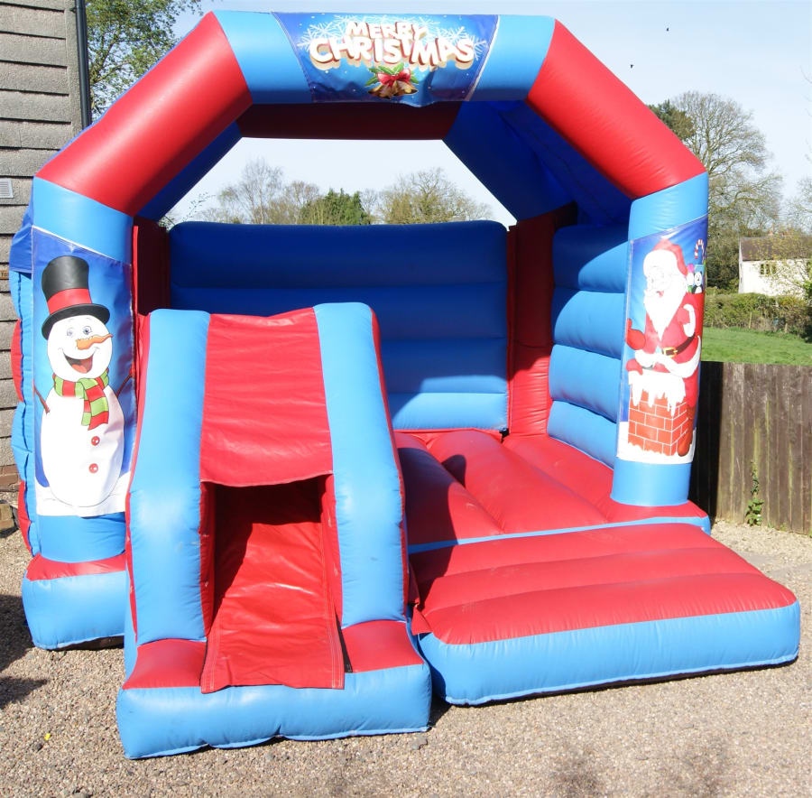Christmas bouncy castle is 13ft x 16ft and is suitable for children up to 13yrs.