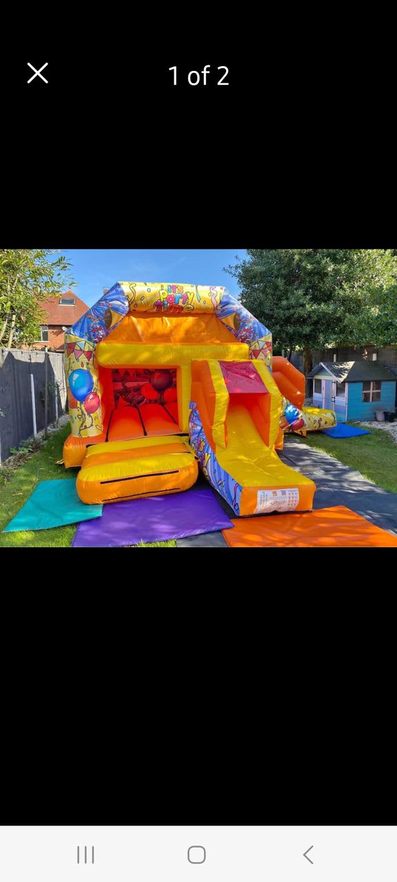 Party Time double slide balloon combi bouncy castle, This bouncy castle is a little diffrent as it has two slides.