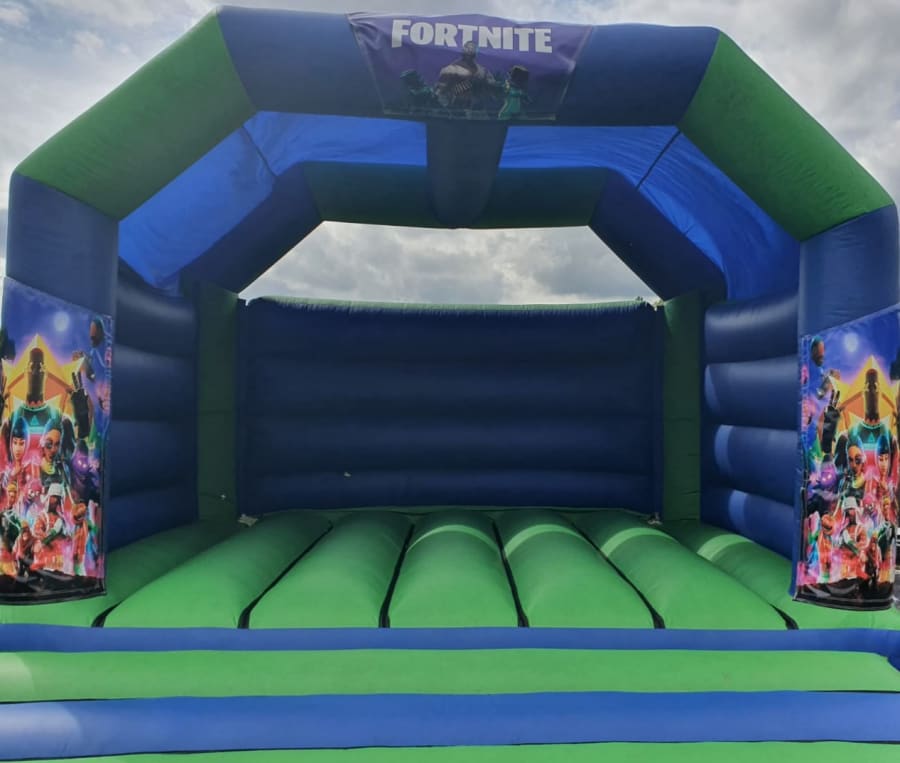 Fortnite adult bouncy castle is 15ft x 15ft and is suitable for adults and children.
