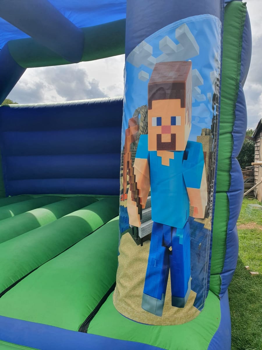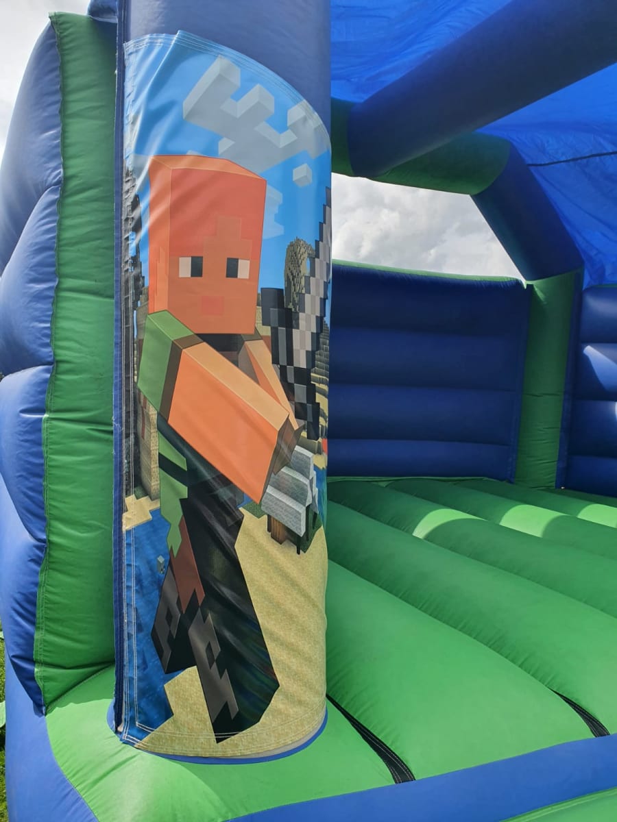 Minecraft adult bouncy castle is 15ft x 15ft and is suitable for adults and children.