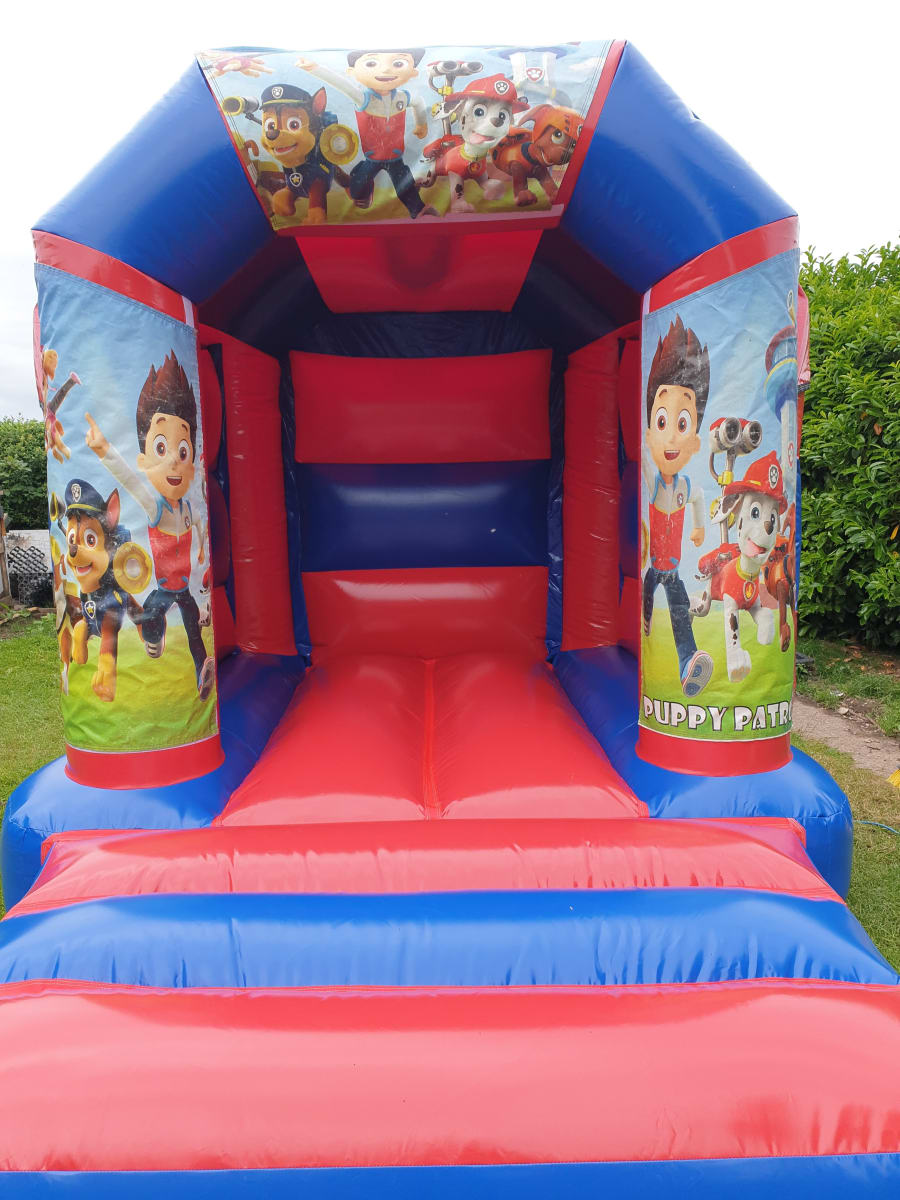 Our Puppy Patrol bouncy castle is 8ft x 11ft and is suitable for children up to 9yrs.