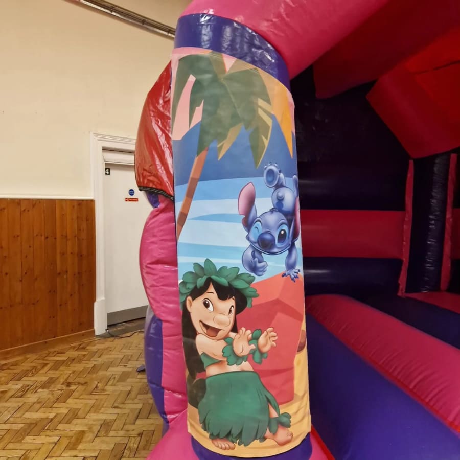 LILO & STITCH bouncy castle is 11ft x 15ft and is suitable for children up to 13yrs.