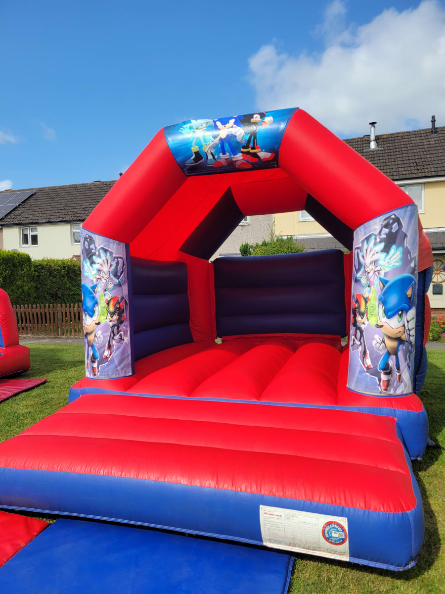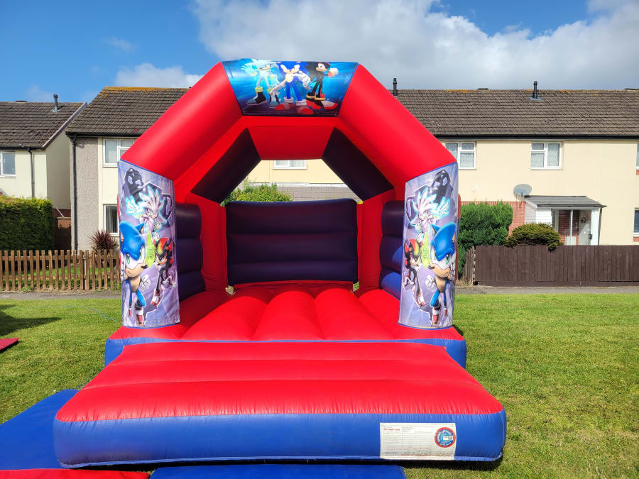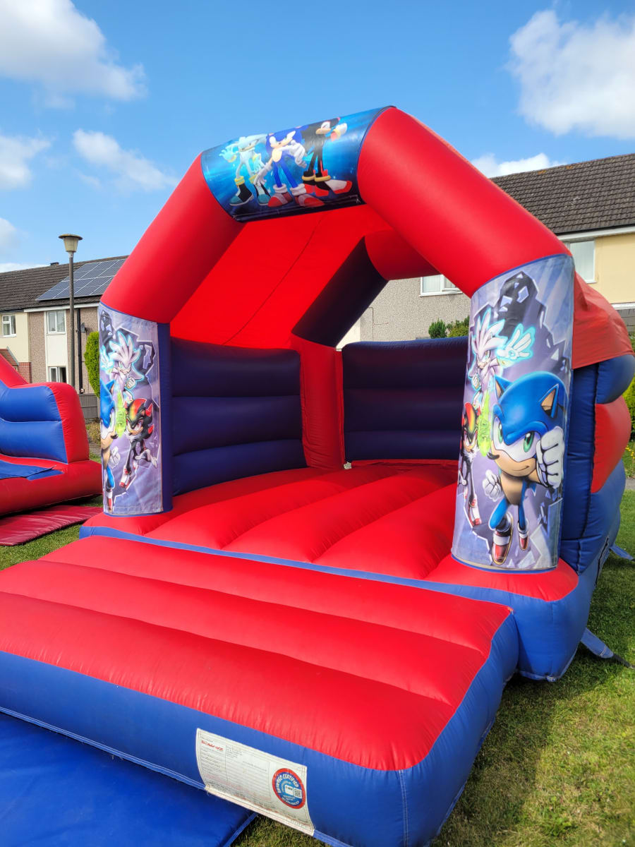 Our Sonic themed bouncy castle is 11ft x 15ft and is suitable for children up to 13yrs.
