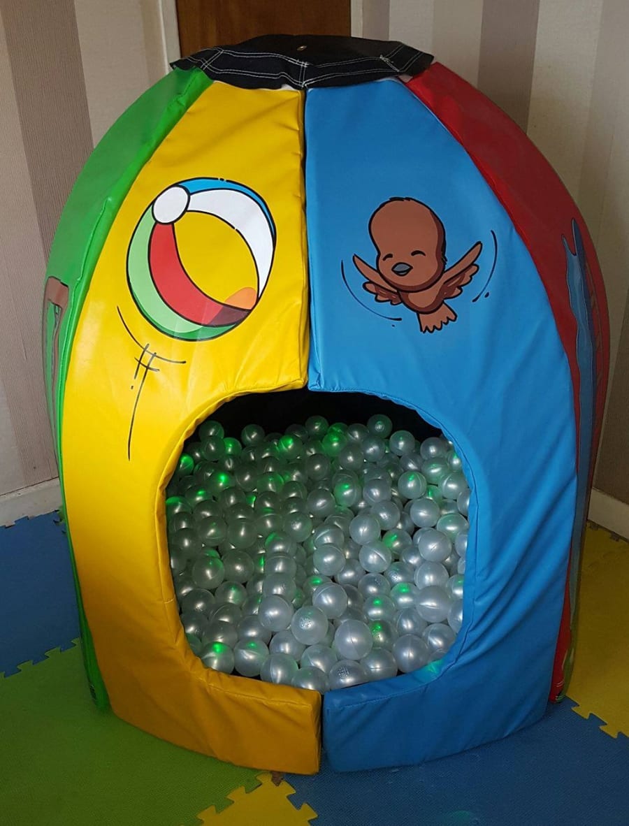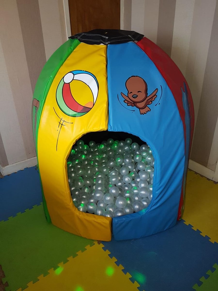 Toddlers soft play disco dome ball pool with built in lights and sound system.