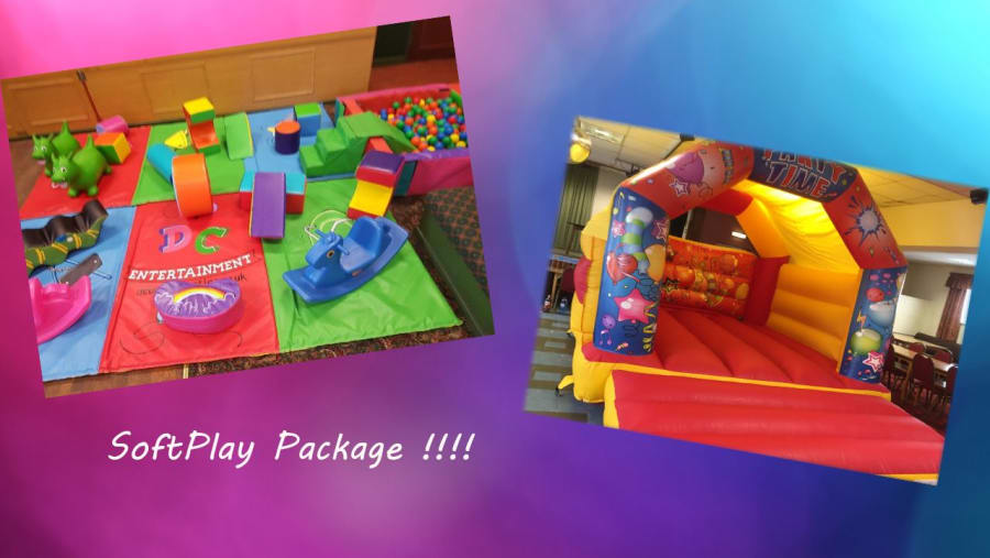 Soft Play Package and 11x 15 Party Time Bouncy Castle. The Soft Play is suitable for children 0 to 5 years old. The soft play area is ideal for all venues the Bouncy Castle is suitable for children upto 13 years old and need a venue height of 10ft