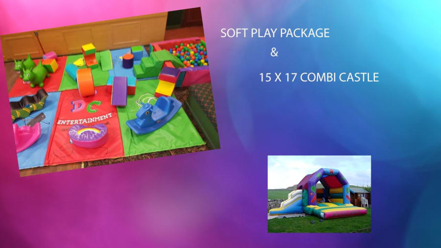 Soft Play Package and 15x 17 balloon themed Bouncy Castle combi. The Soft Play is suitable for children 0 to 5 years old. The soft play area is ideal for all venues the Bouncy Castle is suitable for children upto 13 years old and need a venue height of 10ft